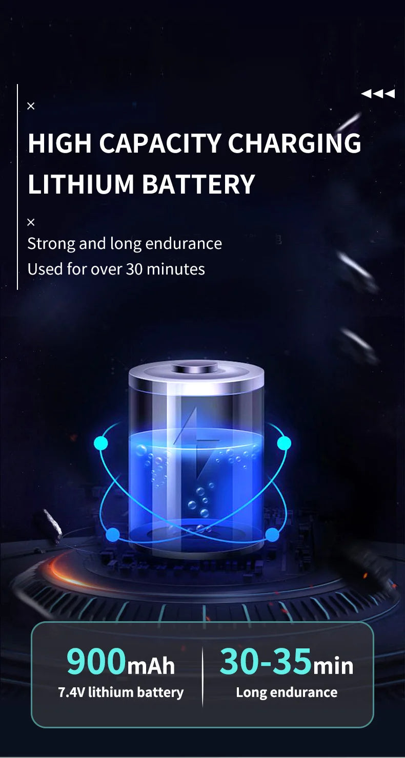 Powered by a 7.4V 18650-1500mAh Li-ion battery, this beast delivers 20–30 minutes of continuous fun and recharges easily via an included USB balance charger or USB line charger.